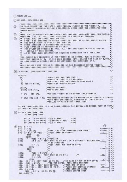 一些技巧。图 15.3 是一段自文档化的 PL/I 程序。圆圈中的数字不是程序的组成部分,而是用来帮助我们进行讨论。