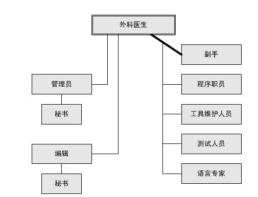 测试人员。外科医生需要大量合适的测试用例,用来对他所编写的工作片段,以及对整个工作进行测试。因此,测试人员既是为他的各个功能设计系统测试用例的对头,同时也是为他的日常调试设计测试数据的助手。他还负责计划测试的步骤和为测试搭建测试平台。